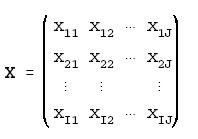 The powerful technique of matrix algebra is well suited for multivariate regression. Data are arranged such that each row represents one person’s scores or responses on the independent variables. Each column represents the same variable for all subjects or cases. A (I*J) data matrix X consists of measurements of J independent variables on I subjects.
