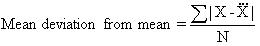Mean Deviation: Mean deviation is a measure of dispersion, which is known as the average deviation. Mean deviation can be computed from the mean or median. Mean deviation is the arithmetic deviation of different items of central tendency. It may be the mean or the median. Symbolically, mean deviation is defined as the following: