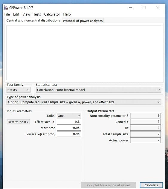 Step 1: Open G*power. Once you open the program, a popup window will appear that looks like this…