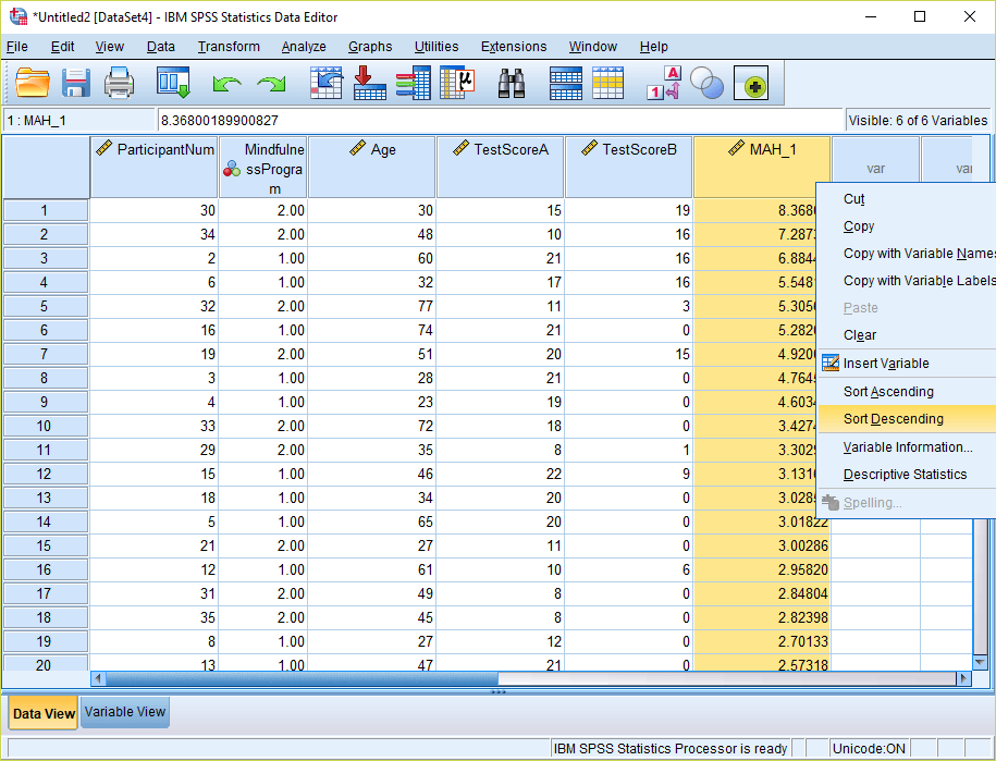 7) Go into Variable View and change the number of decimals for this new variable to “4.”